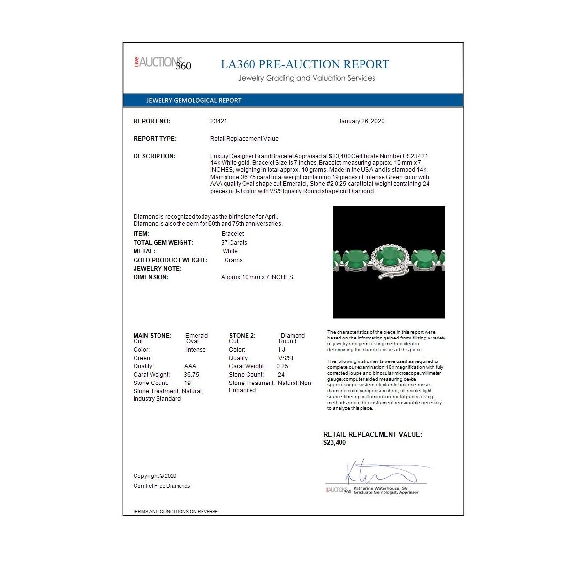 REF-327K3Y - SKU: 23421 ---- 37 ctw Emerald & VS/SI Diamond Micro Pave Bracelet 14k White Gold