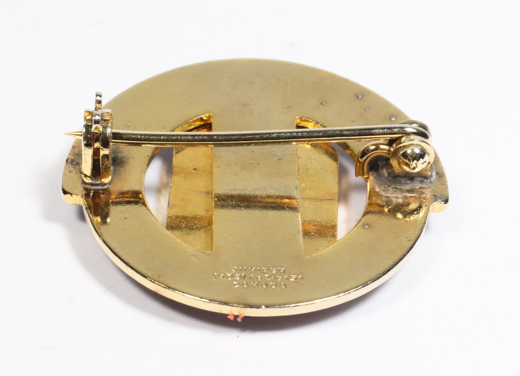 CAP BADGE JUNIPER CANAD MAKER MARKED ON REVERSE OF ENAMEL BADGE LATE 20TH CENTURY CANADIAN LAW ENFORCEMENT INSIGNIA