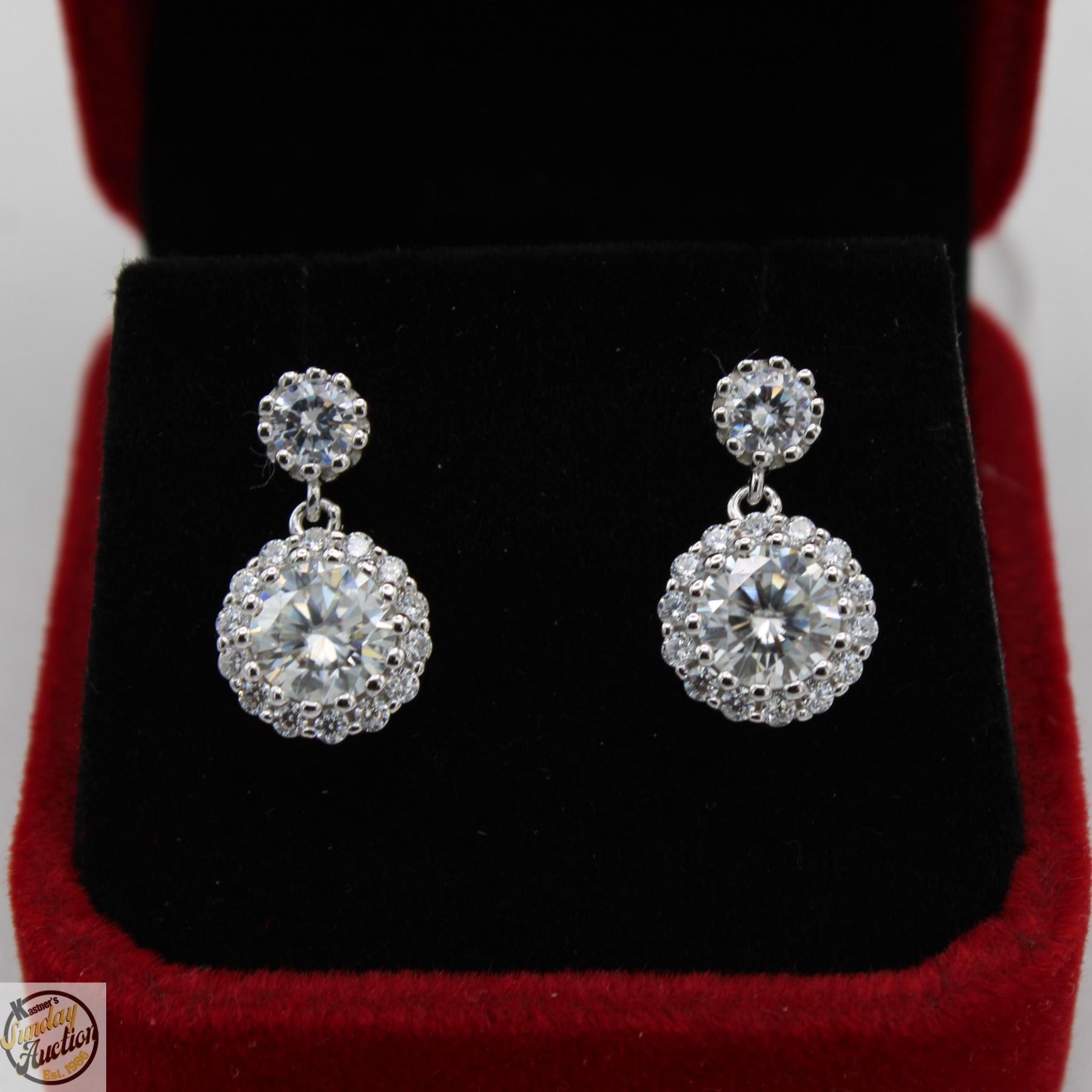 CUT MOISSANITE STONE VVS D COLOR WITH 30 ROUND BRILLIANT CUT CUBIC ZIRCONIA SET IN ROUND HALO SET IN EARRING SET IN 925 SILVER RETAIL VALUE $925.00 **ALL ITEMS MUST BE REMOVED BY 5PM SATURDAY, FEBRUARY 14TH 2025. ALL REMAINING ITEMS WILL BE SUBJECT TO A $6.00 PER DAY STORAGE CHARGE. ANY ITEMS REMAINING AFTER MONDAY, MARCH 2ND 2025 WILL BE CONSIDERED FORFEITED. NO REFUNDS WILL BE ISSUED FOR FORFEITED ITEMS. TO SCHEDULE A PICK UP APPOINTMENT CLICK HERE