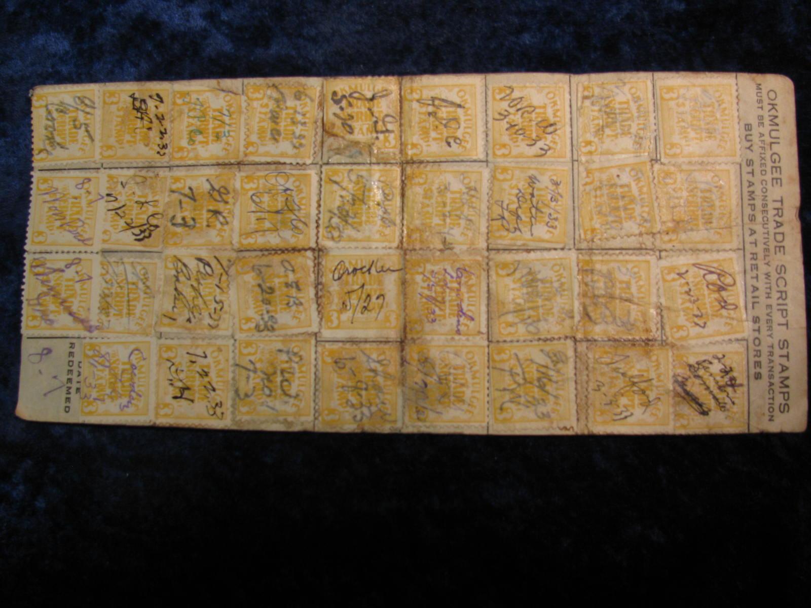 372. 1933 Okmulgee, Ok. $1 Trade Script, W/35 Stamps Affixed