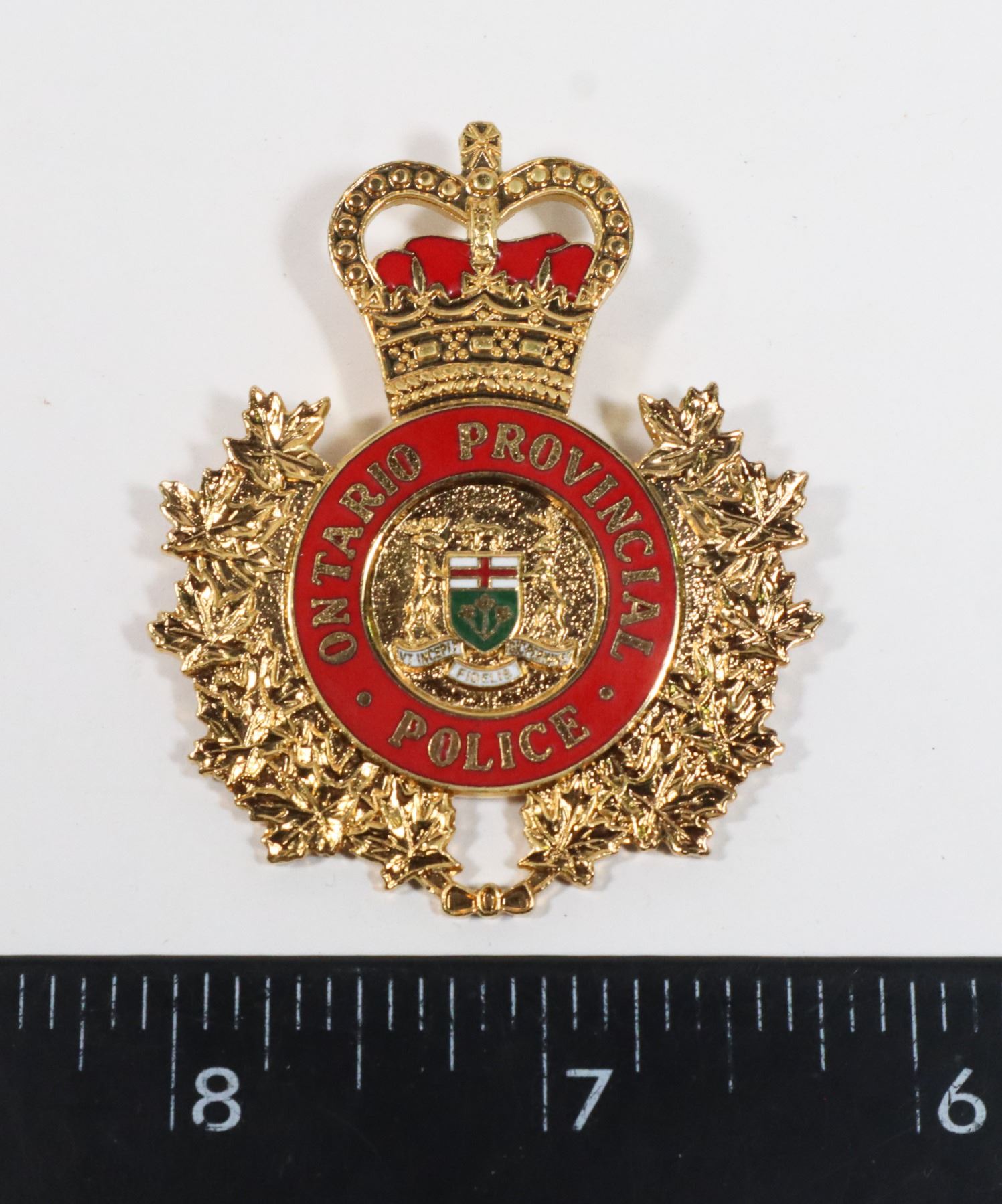 OPP CAP BADGE MISSING REVERSE FASTENER AT MARKED 20TH CENTURY CANADA CANADIAN LAW ENFORCEMENT