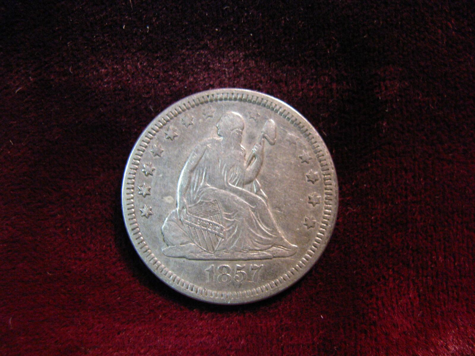 3726. 1857 Liberty Seated Quarter. EF.