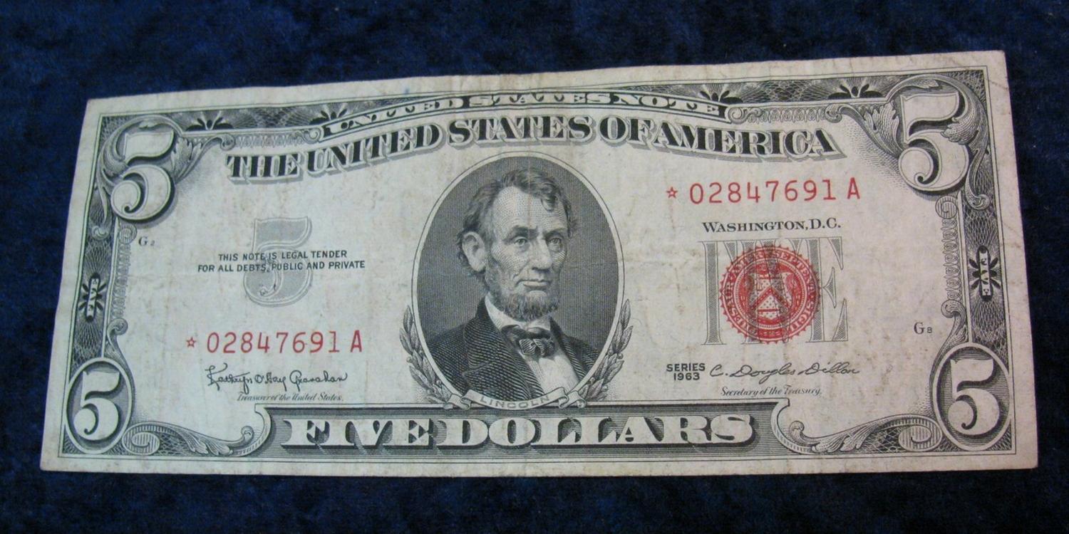 373. Series 1963 Five Dollar U.S. Note Red Seal. Star Replacement note.