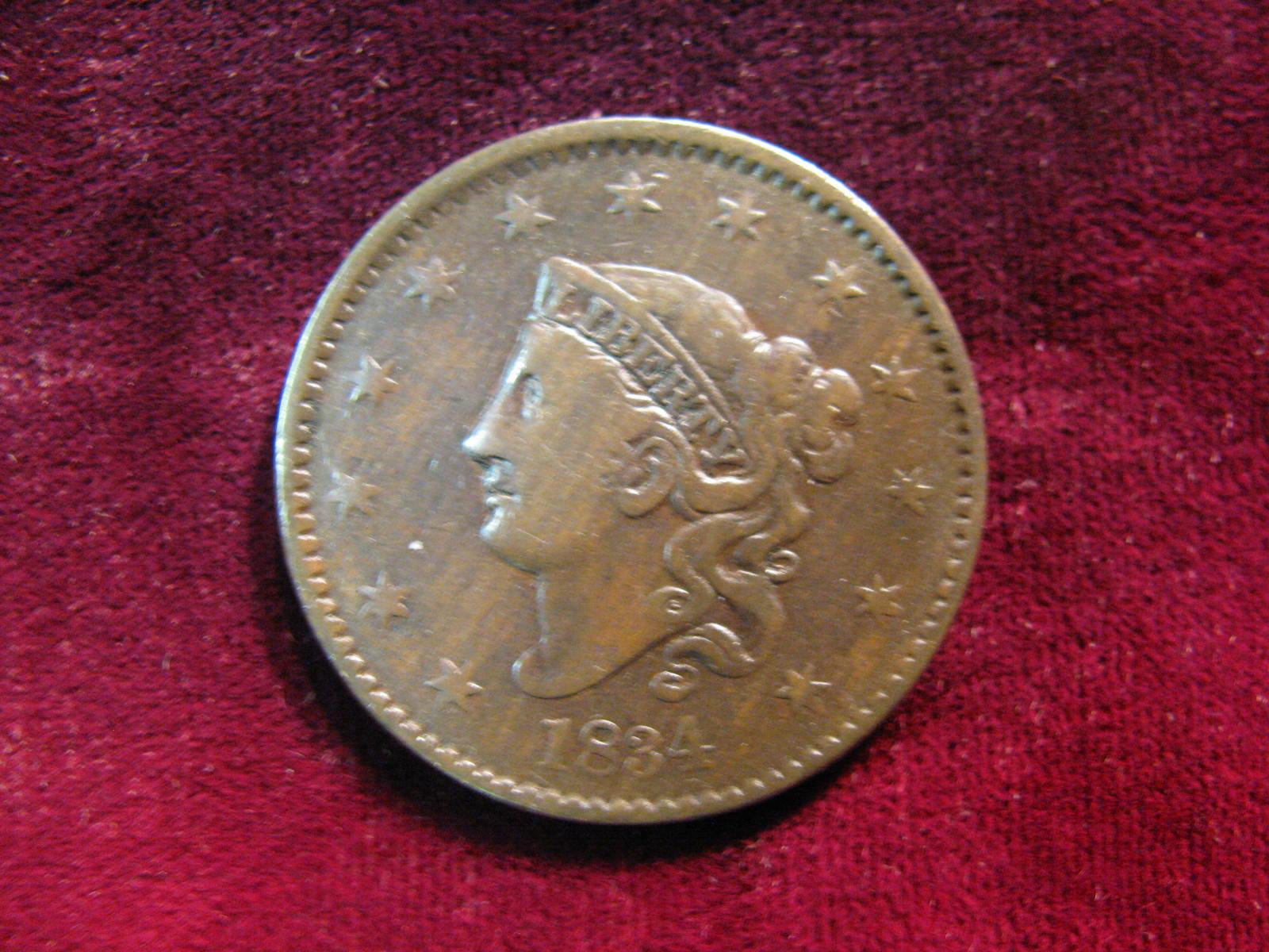 3732. 1834 US Large Cent. Lg. 8 & Stars Scarce Variety. F.