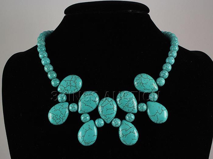 375.14CTW FASHION CHUNKY TURQUOISE NECKLACE **|**|** 16 INCHES TEAR DROPS HOWLITE TURQUOISE BEADS NECKLACE ; MSRP: $300