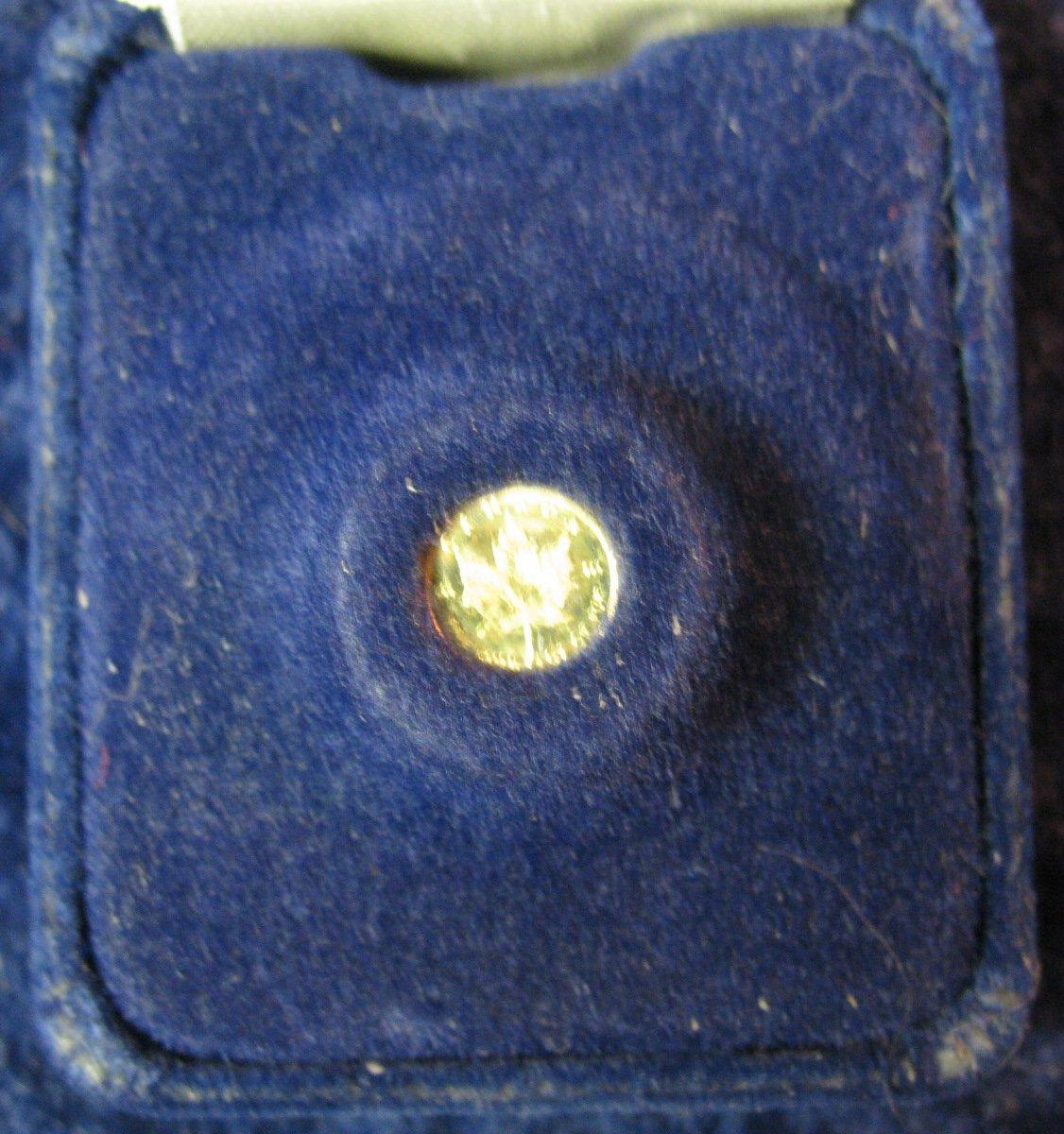 375. Miniature Canada Gold Maple Leaf struck in 24K Gold. Mounted in velvet-lined case.