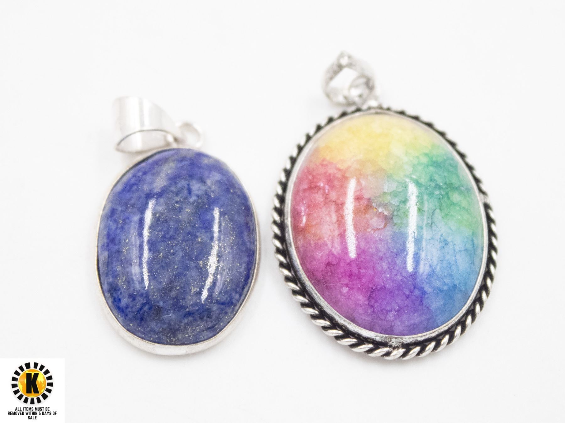 #376-NATURAL LAPIZ LAZULI ,RANBOW SOLAR QZ PENDA