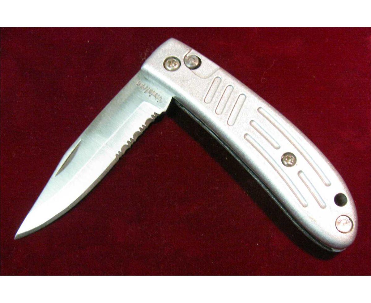 376. Partial Serrated Lock Blade Knife. Metal handle.