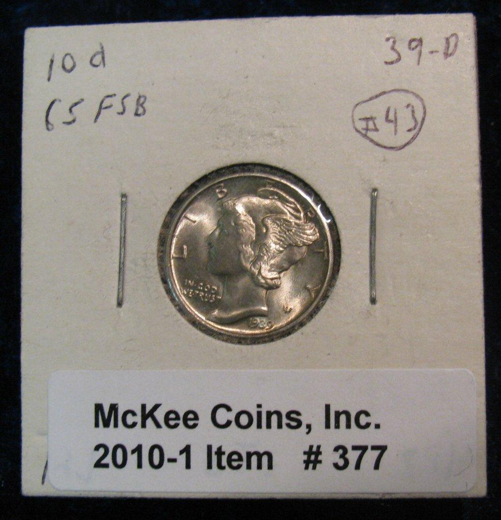 377. 1939 D Mercury Dime. MS 65 FSB Est. Value $49.00