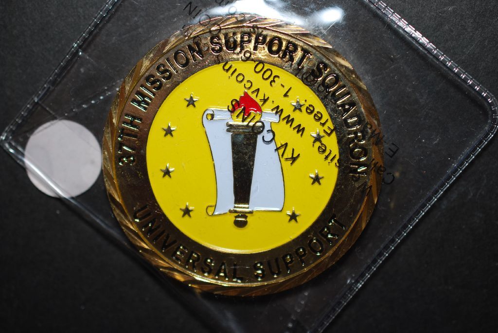 37th Mission Support Squadron Military Challenge Medal Presented By The Commander; Universal Support, Integrity, Service, Excellence; EST. $5-10