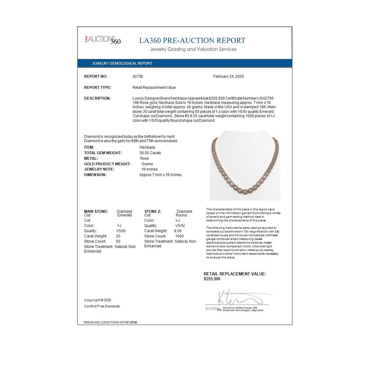 REF-6060W2H - SKU: 42750 ---- 38.05 ctw Emerald Cut Diamond Micro Pave Necklace 18K Rose Gold