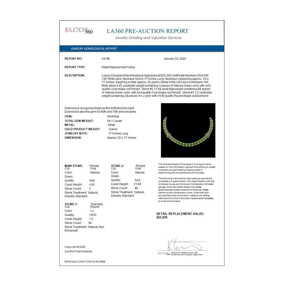 REF-454W5H - SKU: 44195 ---- 38.1 ctw Peridot & Diamond Necklace 14K White Gold