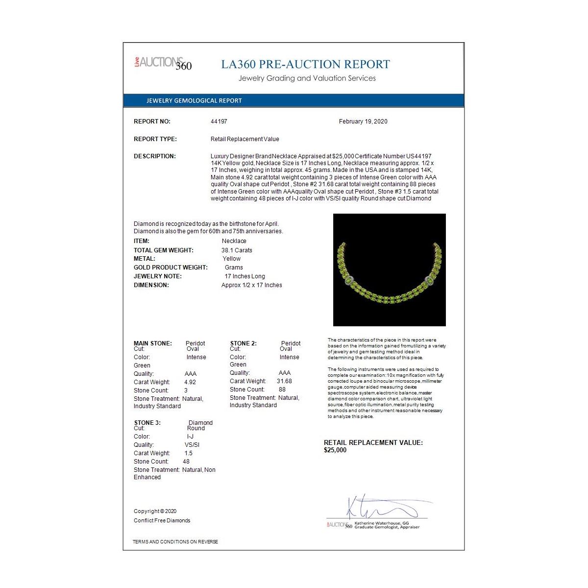 REF-454Y5X - SKU: 44197 ---- 38.1 ctw Peridot & Diamond Necklace 14K Yellow Gold
