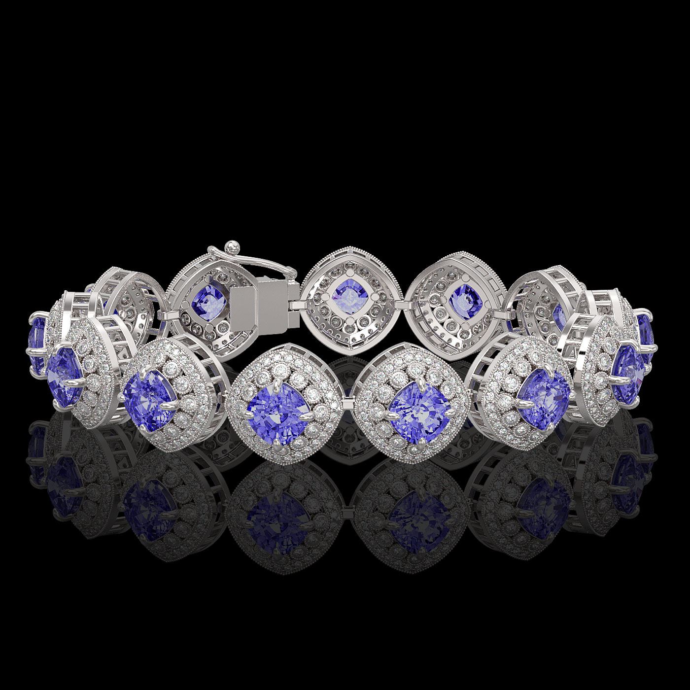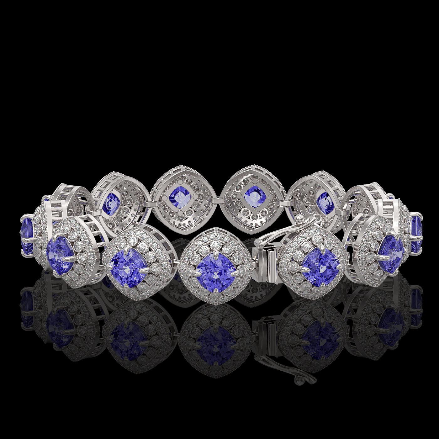 REF-1136W8H - SKU: 44153 ---- 38.1 ctw Tanzanite & Diamond Victorian Bracelet 14K White Gold
