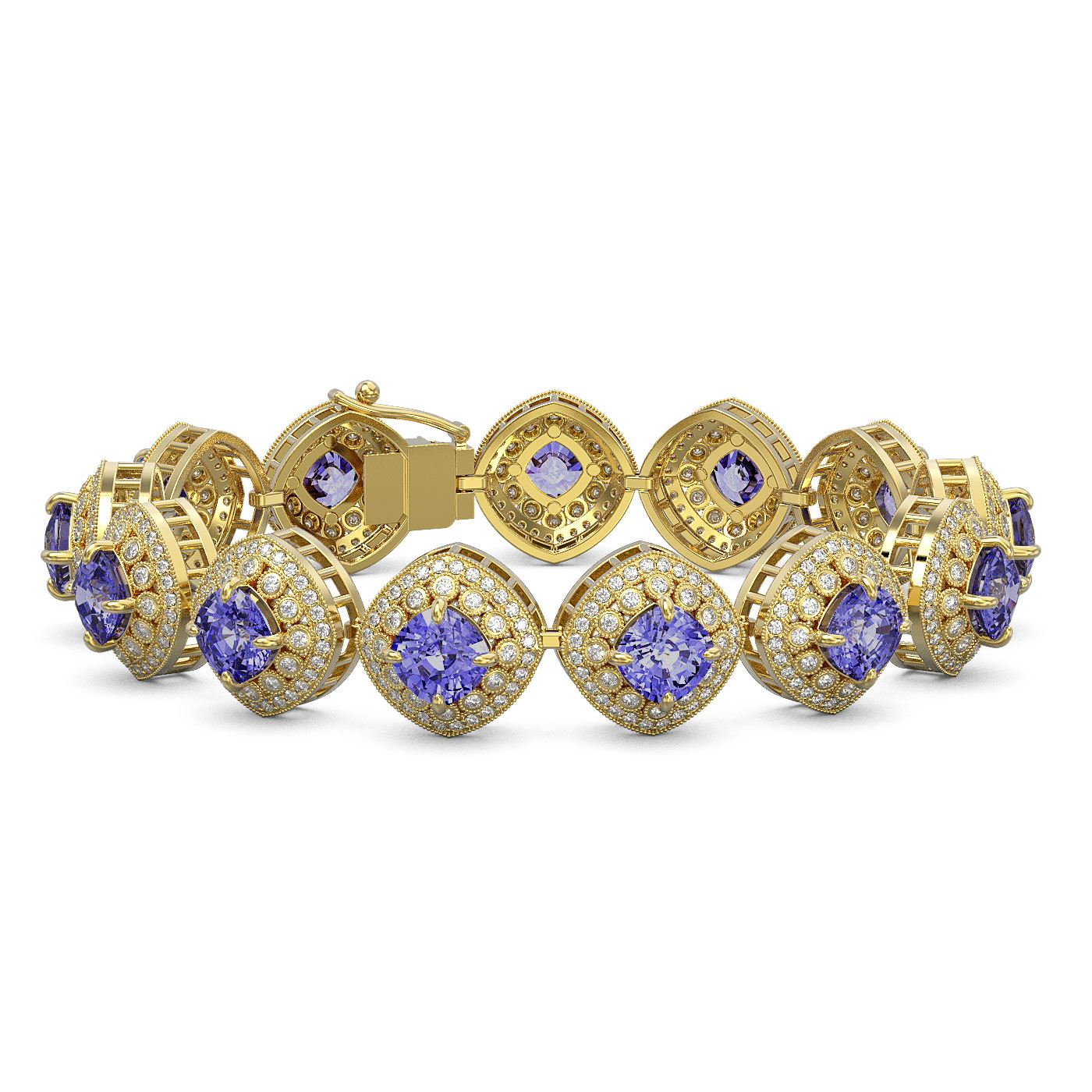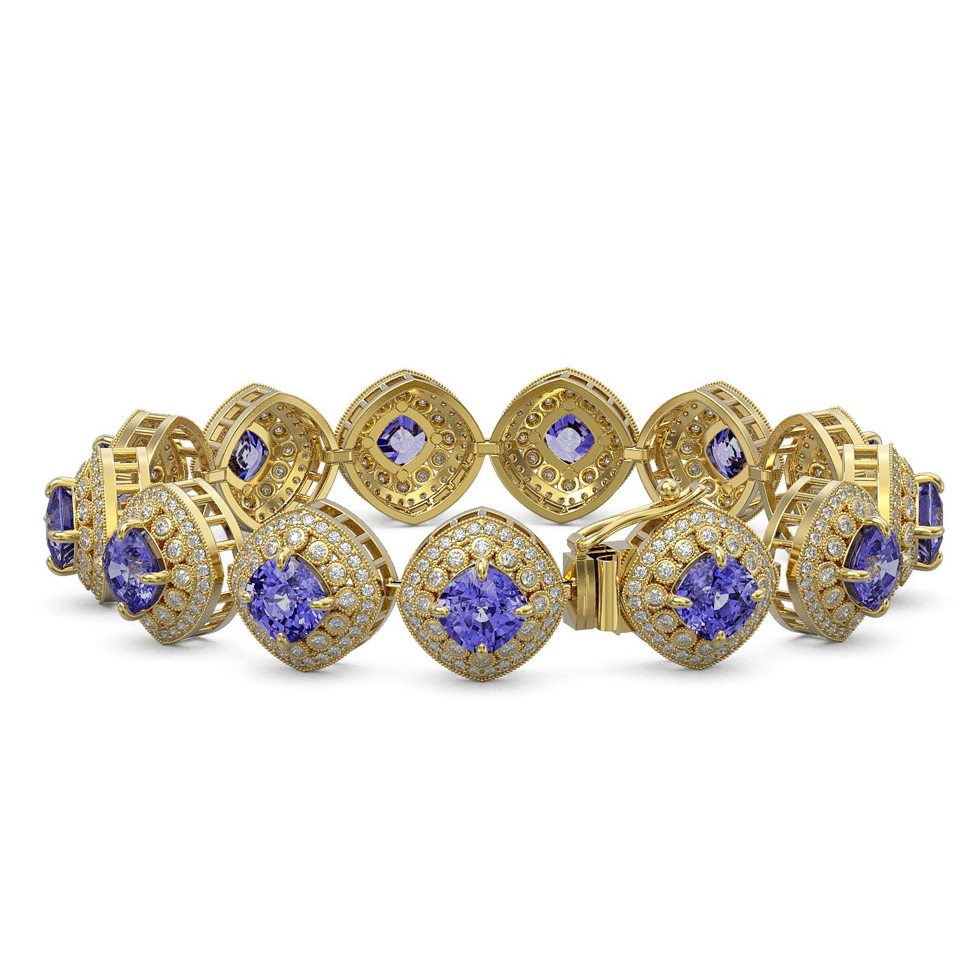 38.1 ctw Tanzanite & Diamond Victorian Bracelet 14K Yellow Gold