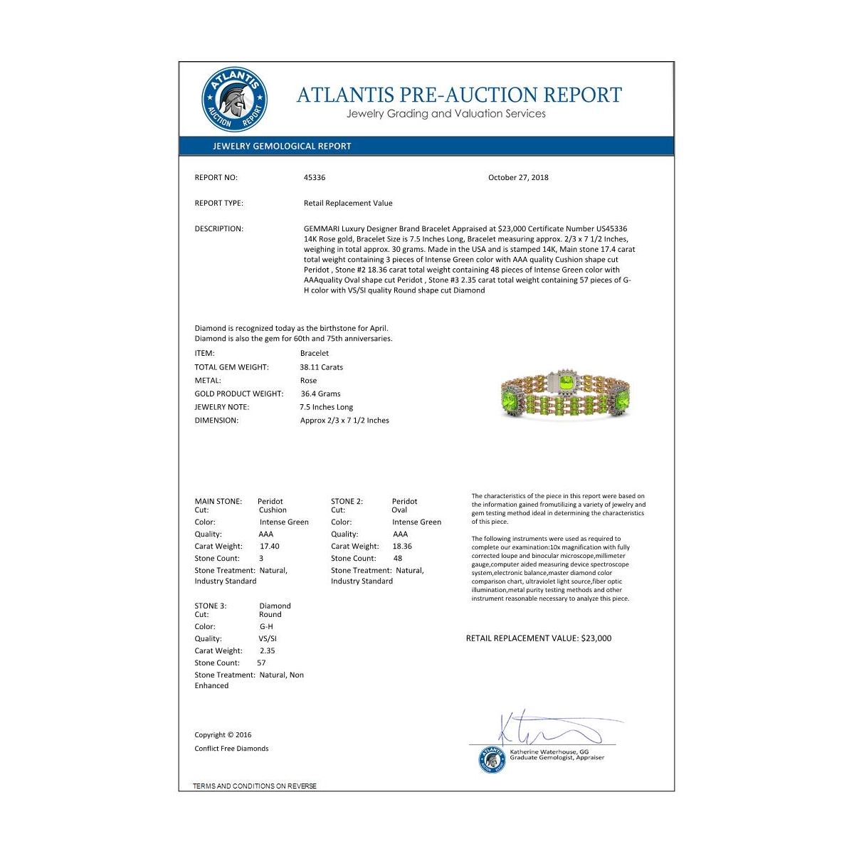 38.11 ctw Peridot & Diamond Bracelet 14K Rose Gold