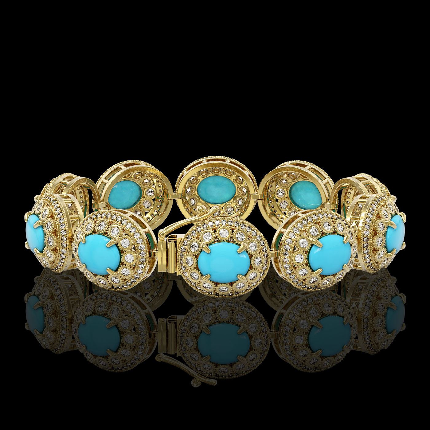 REF-1179N3F - SKU: 46124 ---- 38.17 ctw Turquoise & Diamond Victorian Bracelet 14K Yellow Gold