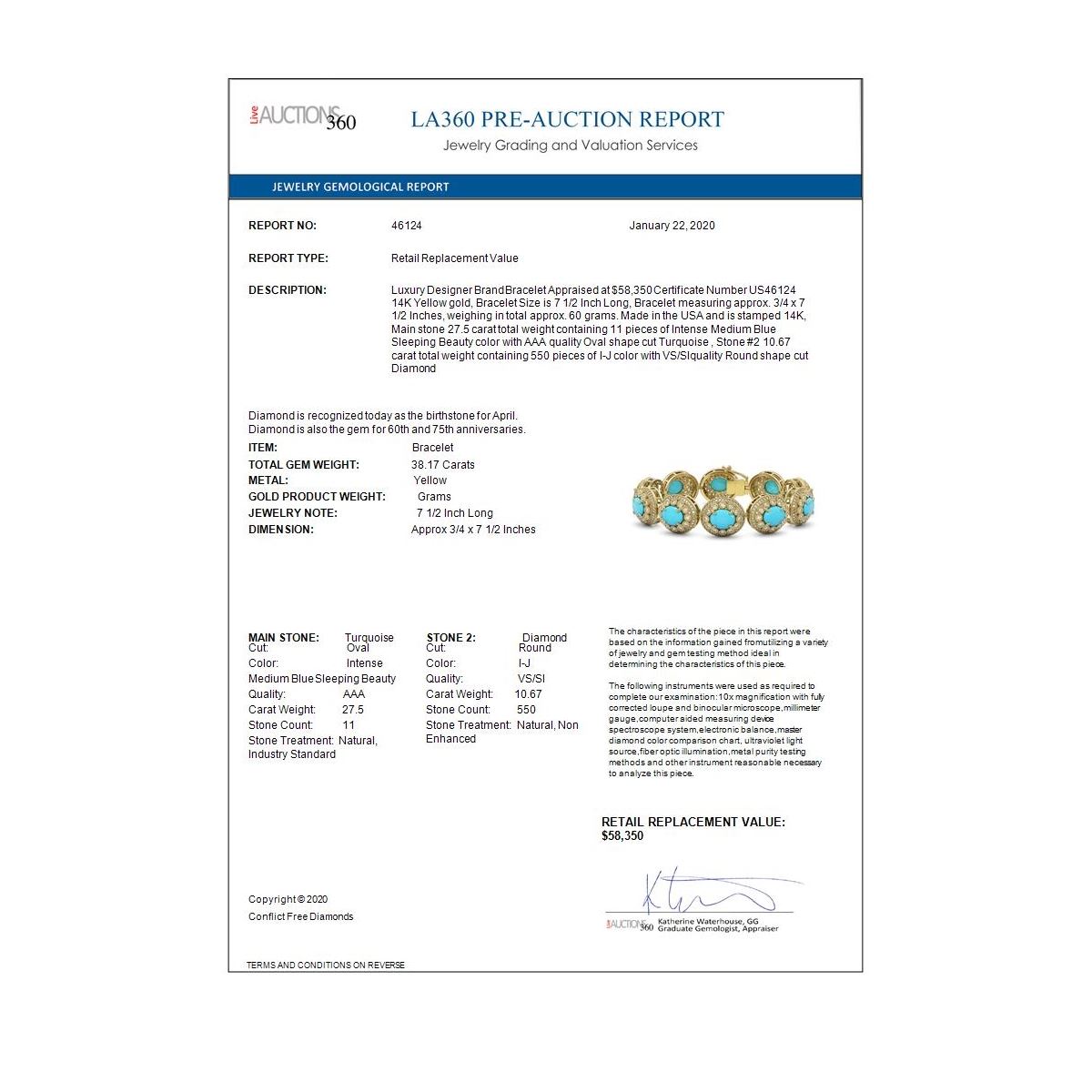REF-1179R3K - SKU: 46124 ---- 38.17 ctw Turquoise & Diamond Victorian Bracelet 14K Yellow Gold