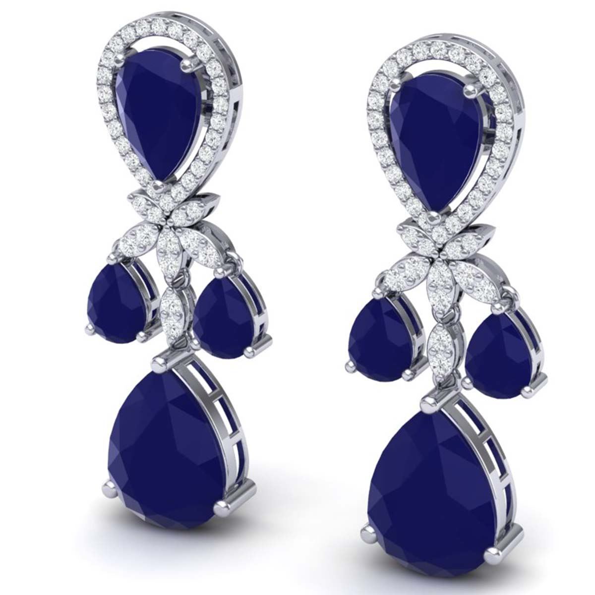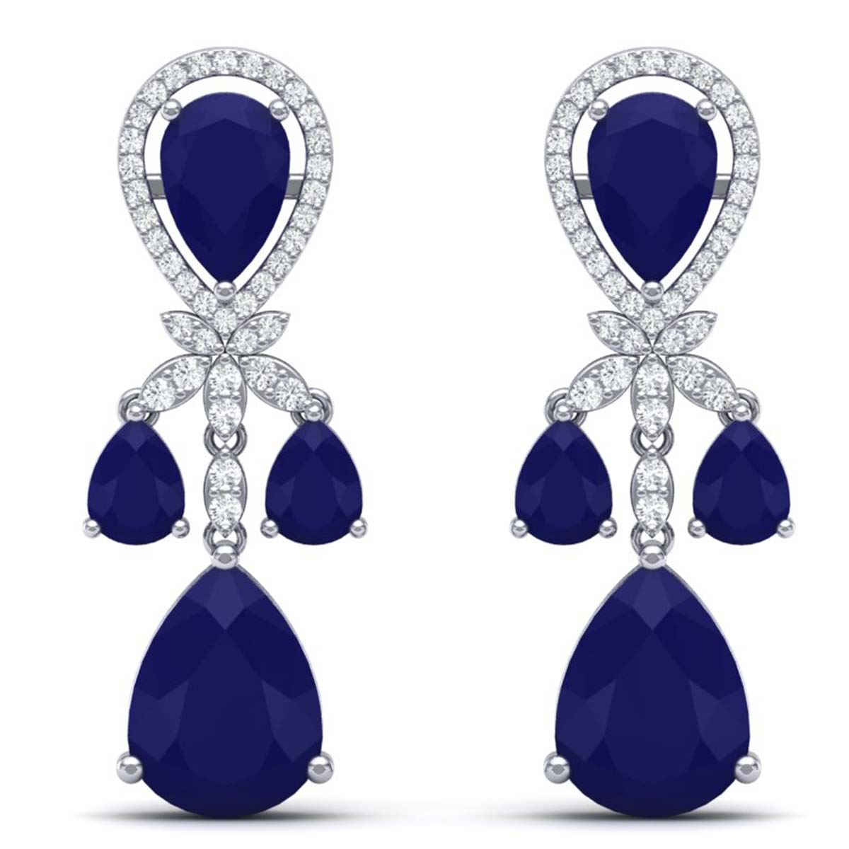 38.29 ctw Sapphire & VS Diamond Earrings 18K White Gold