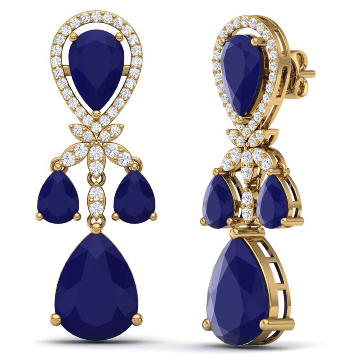 38.29 ctw Sapphire & VS Diamond Earrings 18K Yellow Gold