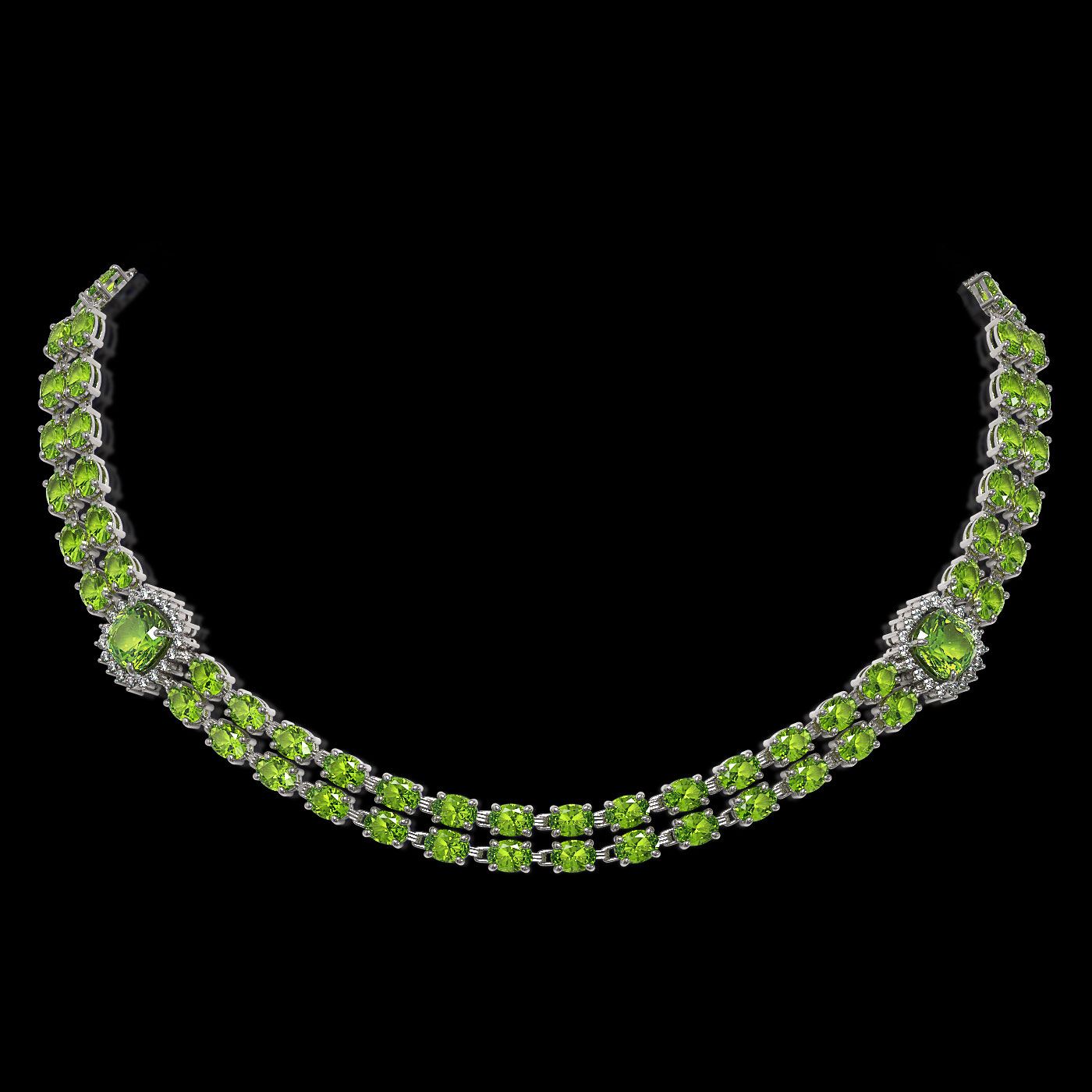 SKU: 44708 ---- 38.37 ctw Peridot & Diamond Necklace 14K White Gold