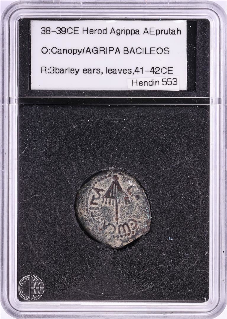 One 38-39CE Herod Agrippa Prutah Ancient Coin.