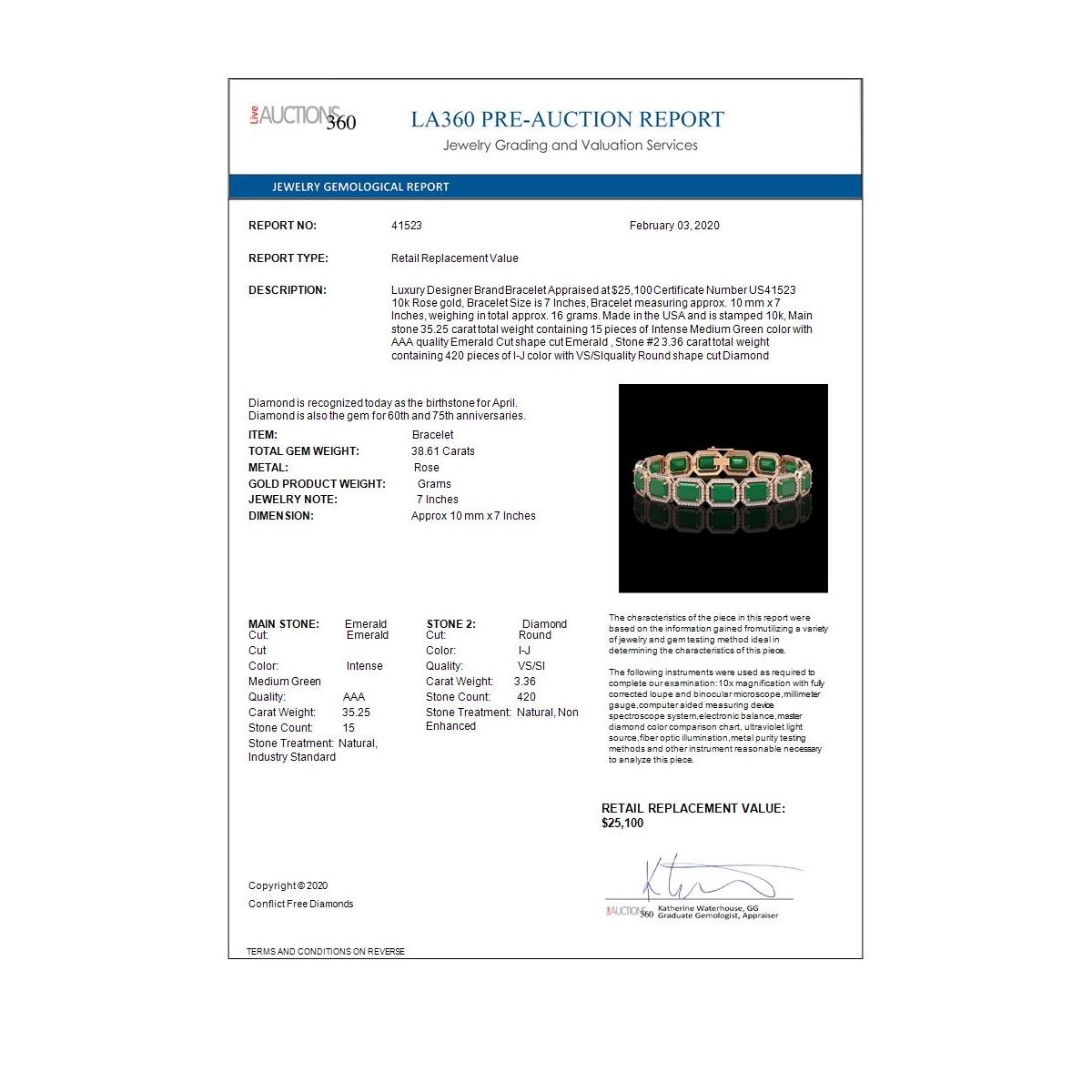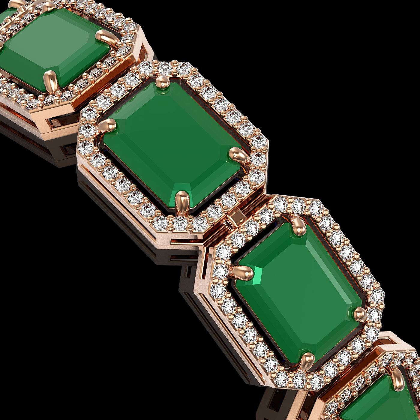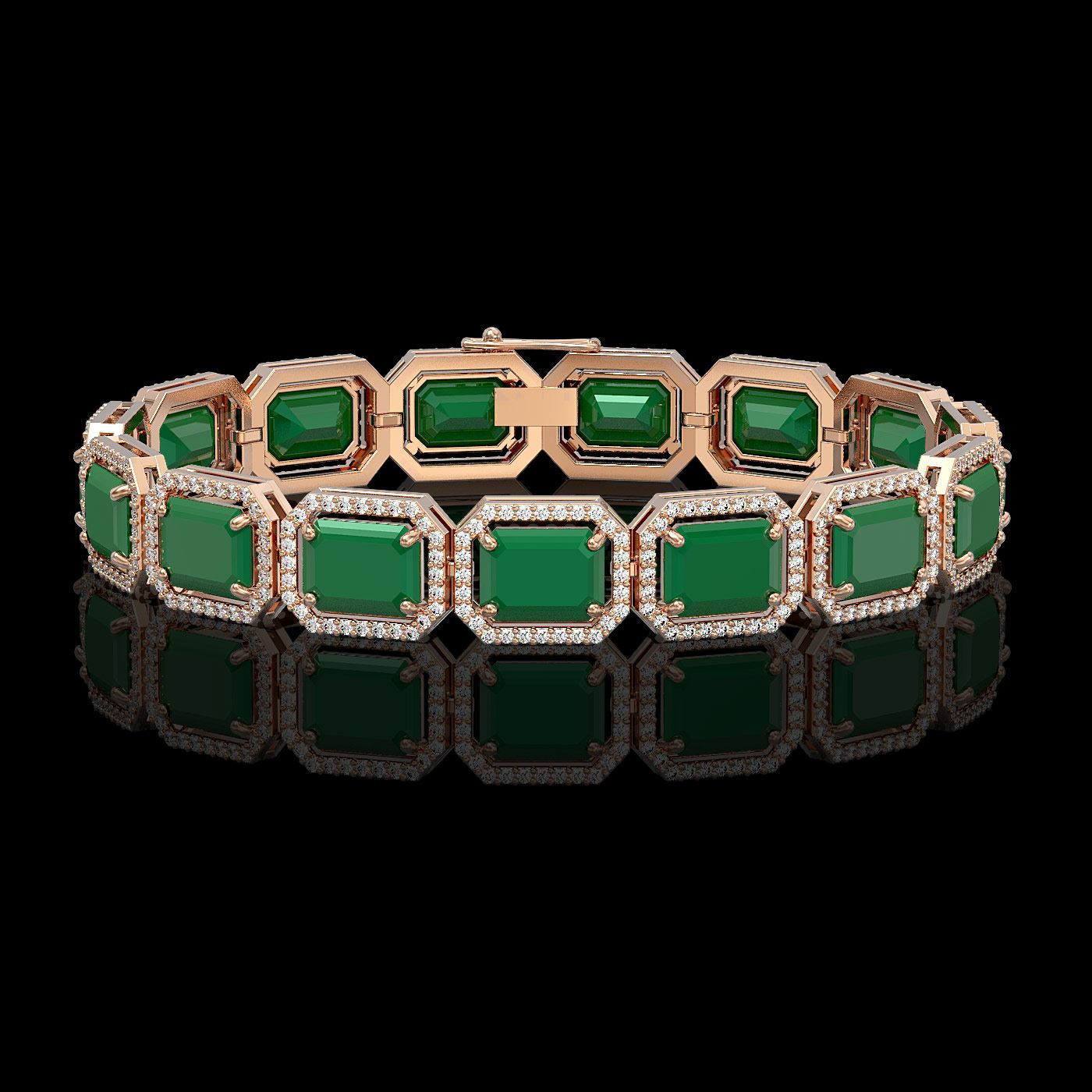 REF-456G5W - SKU: 41523 ---- 38.61 ctw Emerald & Diamond Micro Pave Halo Bracelet 10k Rose Gold