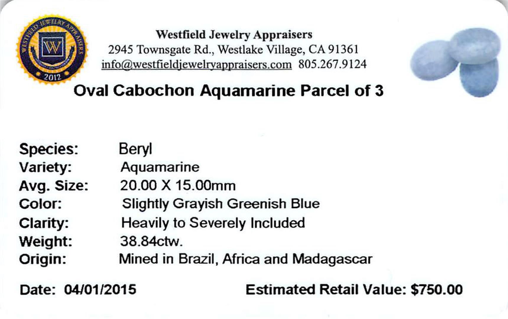 One 38.84ctw Oval Cabochon Aquamarine Parcel.