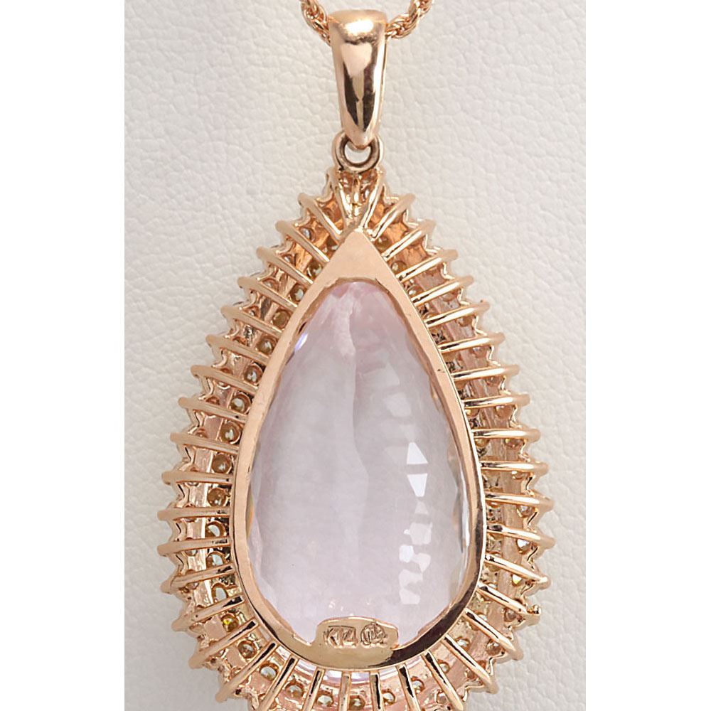38.92 CTW Natural Kunzite And Diamond Pendant In 14K Solid Rose Gold