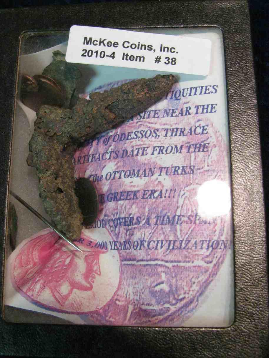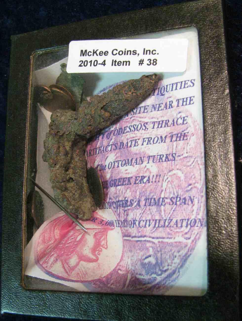 38. Glass framed case of Roman Coins & Antiquities. Contents are all nearly 2,000 years old.
