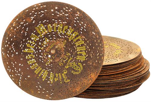 38 Blechplatten "Polyphon" (Ø 24,3 cm) Mit vielen bekannten Melodien, u.a. "La Paloma", "Wozu hast Du denn das?" Teilweise Flugrost - technisch guter Zustand!
