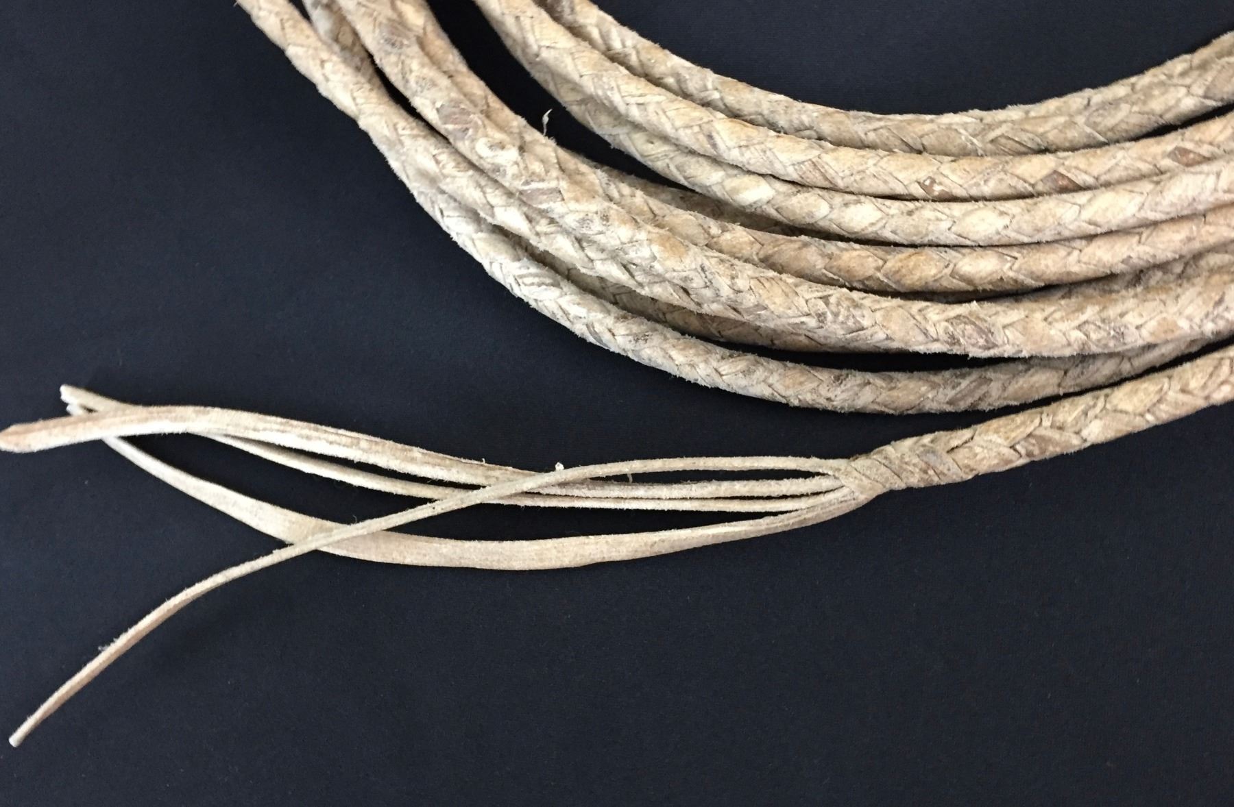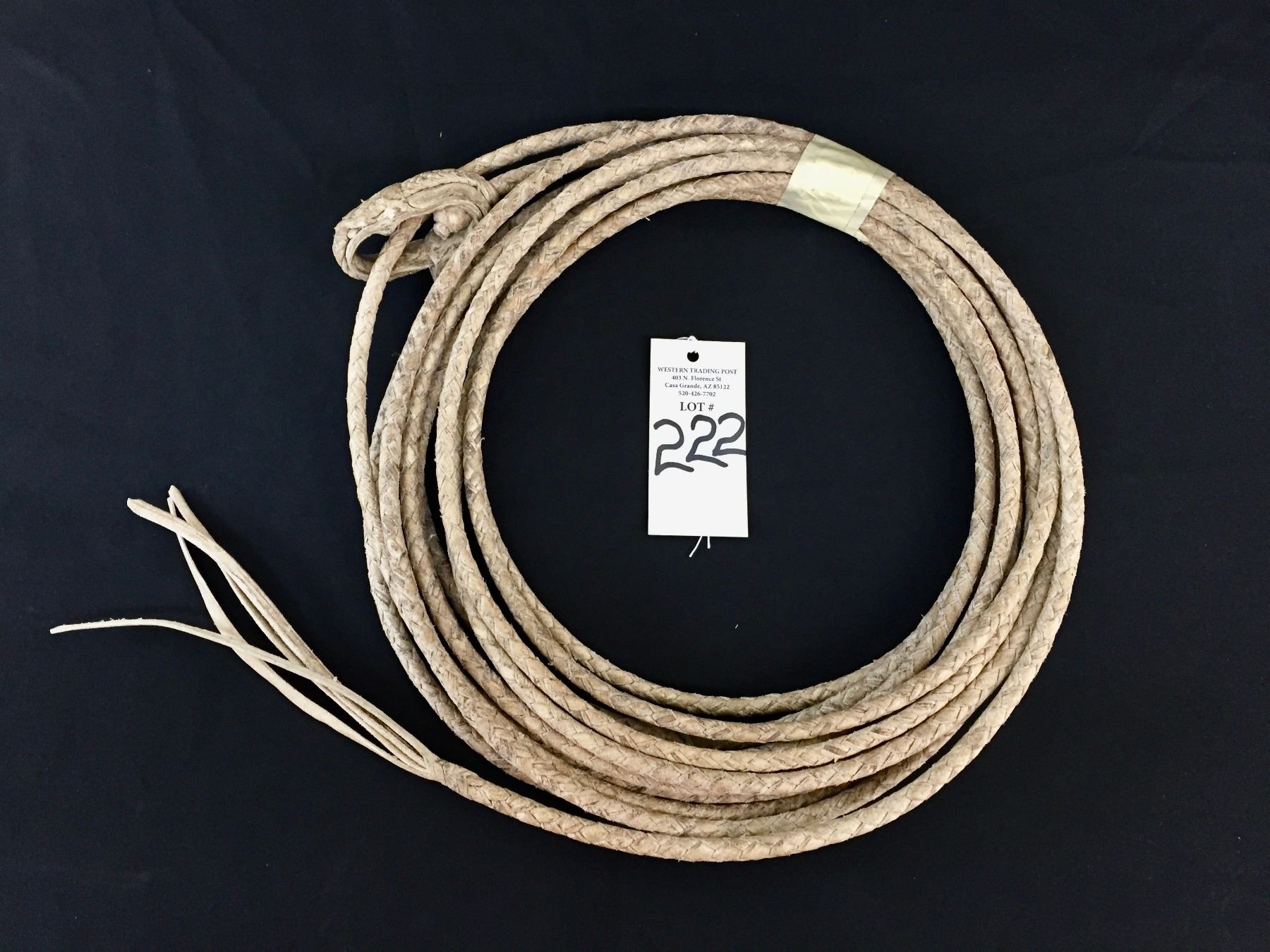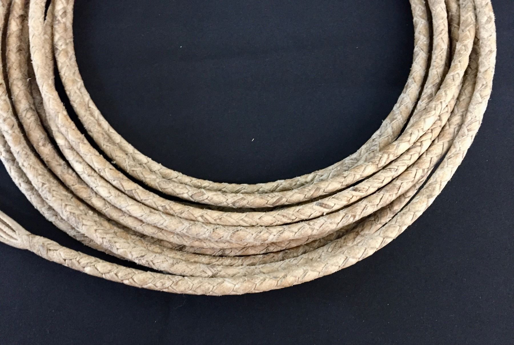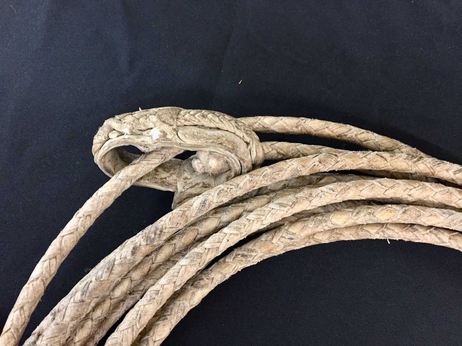 Description: For sale in this lot is a 38 foot Riata with a nice Hondo which swivels independently from the rope. Braided with 4 strands.                                                                                                           Maker: Unknown.                                                                                                                   Approx. Age: Vintage.                                                                                                            Size: 38 foot.                                                                                                                                                                                                                                 Condition: Good for its age, normal wear expected.                                                                                                                Please look closely at the pictures - they are an important part of our description.                                Shipping: There will be a $7 handling / packaging fee for shipping this lot. The actual cost of postage will be added on top of that.