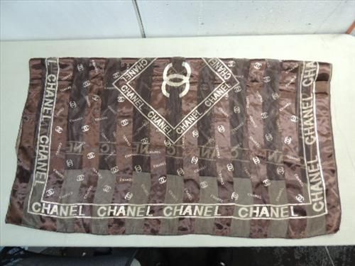 38" SQUARE SILK CHANEL SCARF. AS SHOWN. VIEW PICTURE FOR DETAIL.