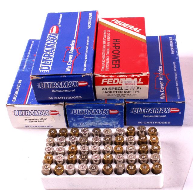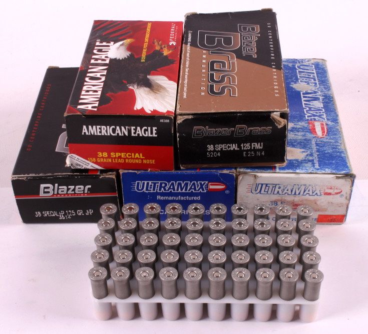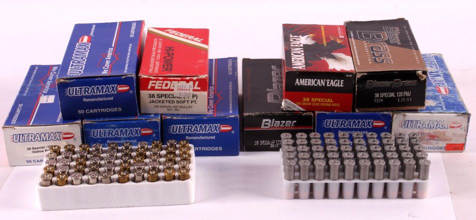 This lot features several boxes of .38 Special ammunition and brass. There are 223 rounds of new, unfired ammunition ranging from 125-158gr. of jacketed and unjacketed. In addition, there are 270 pieces of empty brass. The ammunition and brass in this lot are in good condition.