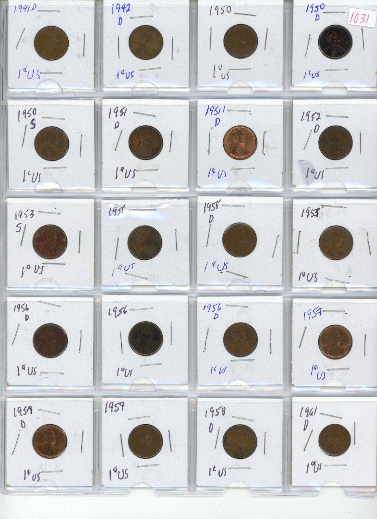 38 U.S.A pennies 1941D-1981D (some years missing)