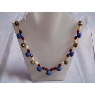 380.0 ctw Lapis Ruby and Pearl Necklace .925 Sterling **|**|** Weight: 76.48g ; MSRP: $3200