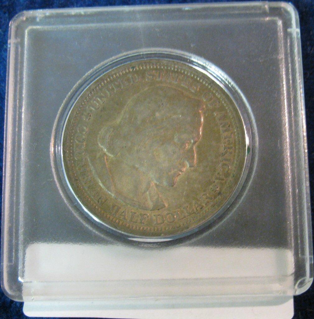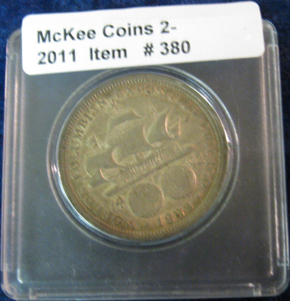 380. 1893 World's Columbian Exposition Commemorative Silver Half Dollar. Toned EF-AU. In a Snaptight case.