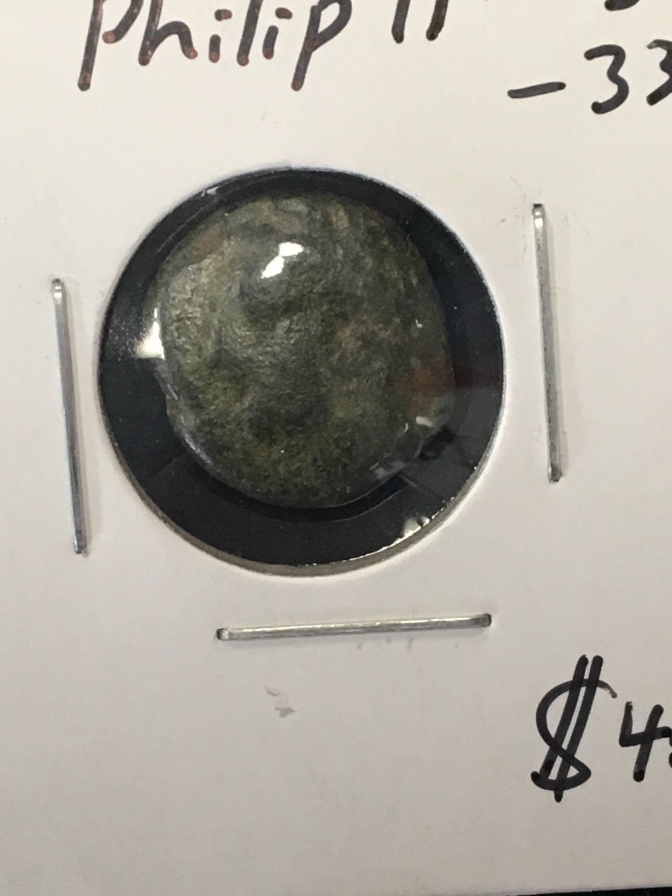 NICE BRONZE COIN SHOWING THE BUST OF PHILI II AND THE CLASSSIC HORSE AND RIDER REVERSE