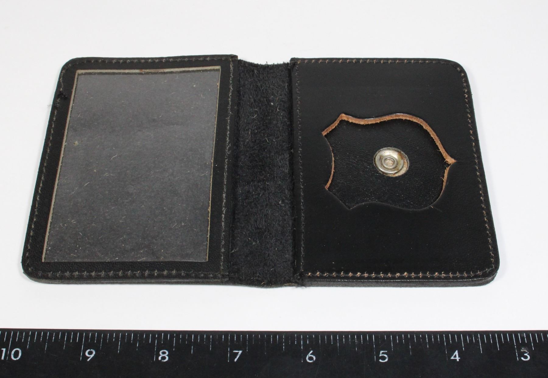 BLACK LEATHER, NOS NEW OLD STOCK VINTAGE 20TH CENTURY POLICE LAW ENFORCEMENT INSIGNIA