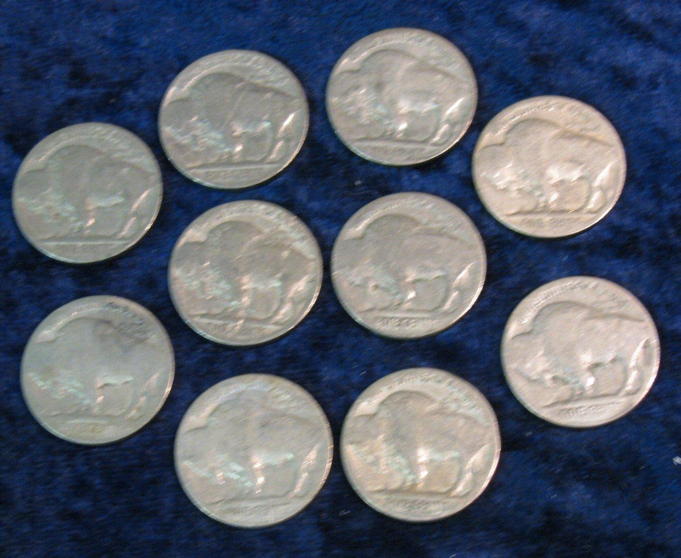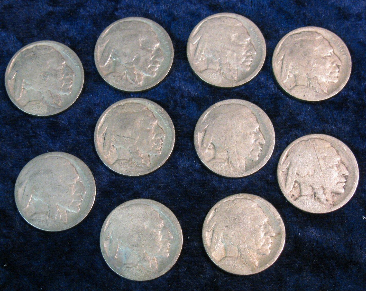 382. (10) 1916-18 P Buffalo Nickels. Most appear to be restored dates.