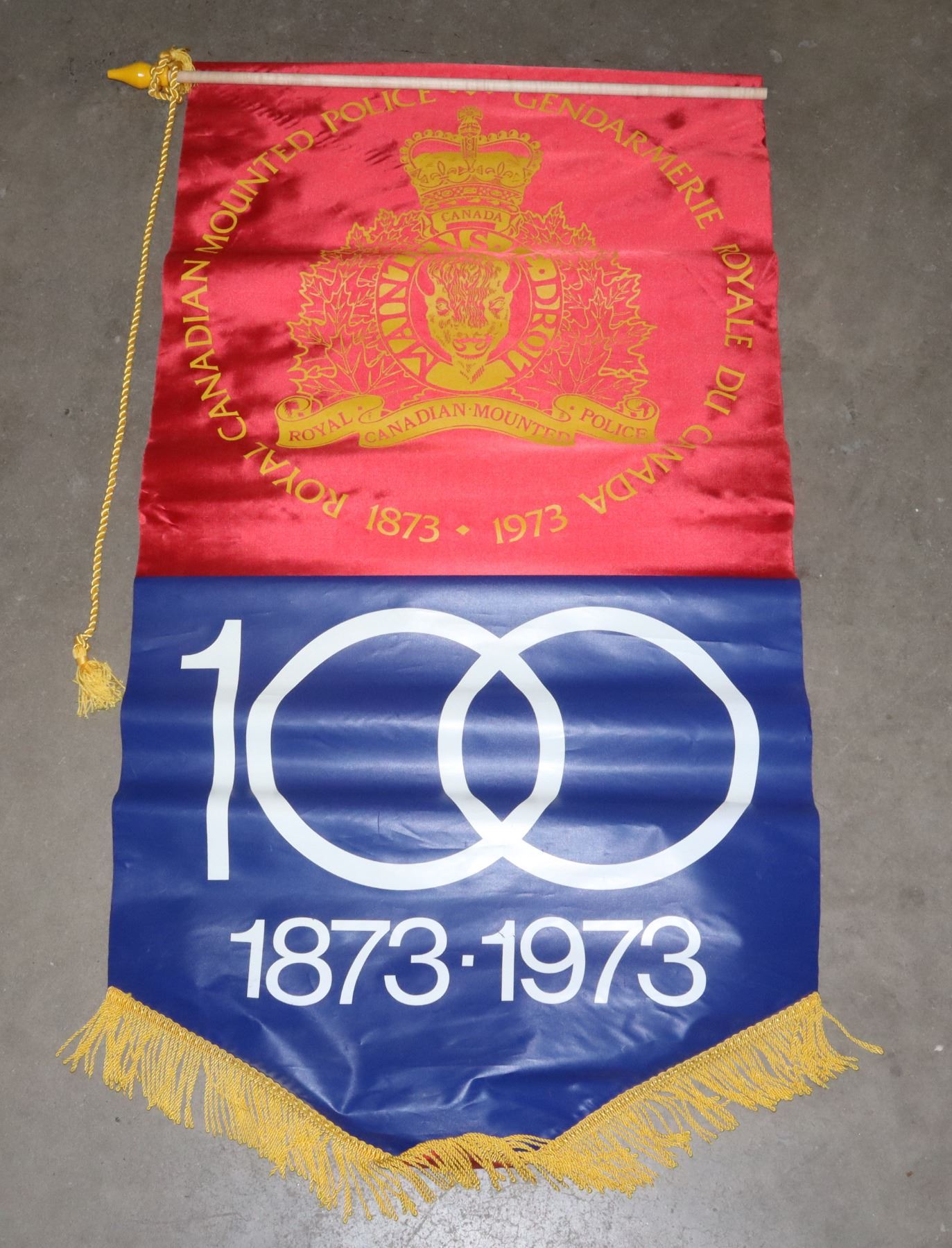 MOUNTED POLICE BANNER CENTENNIAL***ITEM(S) LOCATED IN LETHBRIDGE ALBERTA, FREE TRANSPORT TO OUR EDMONTON OFFICE AVAILABLE. WORLDWIDE SHIPPING IS AVAILABLE***