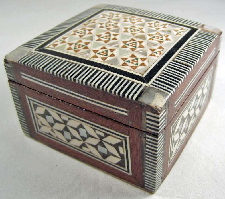 3835 - EGYPTIAN MOTHER OF PEARL INLAID JEWELRY BOX