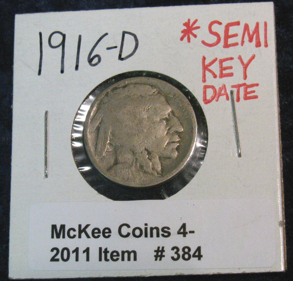 384. 1916 D Buffalo Nickel. Semi-Key.