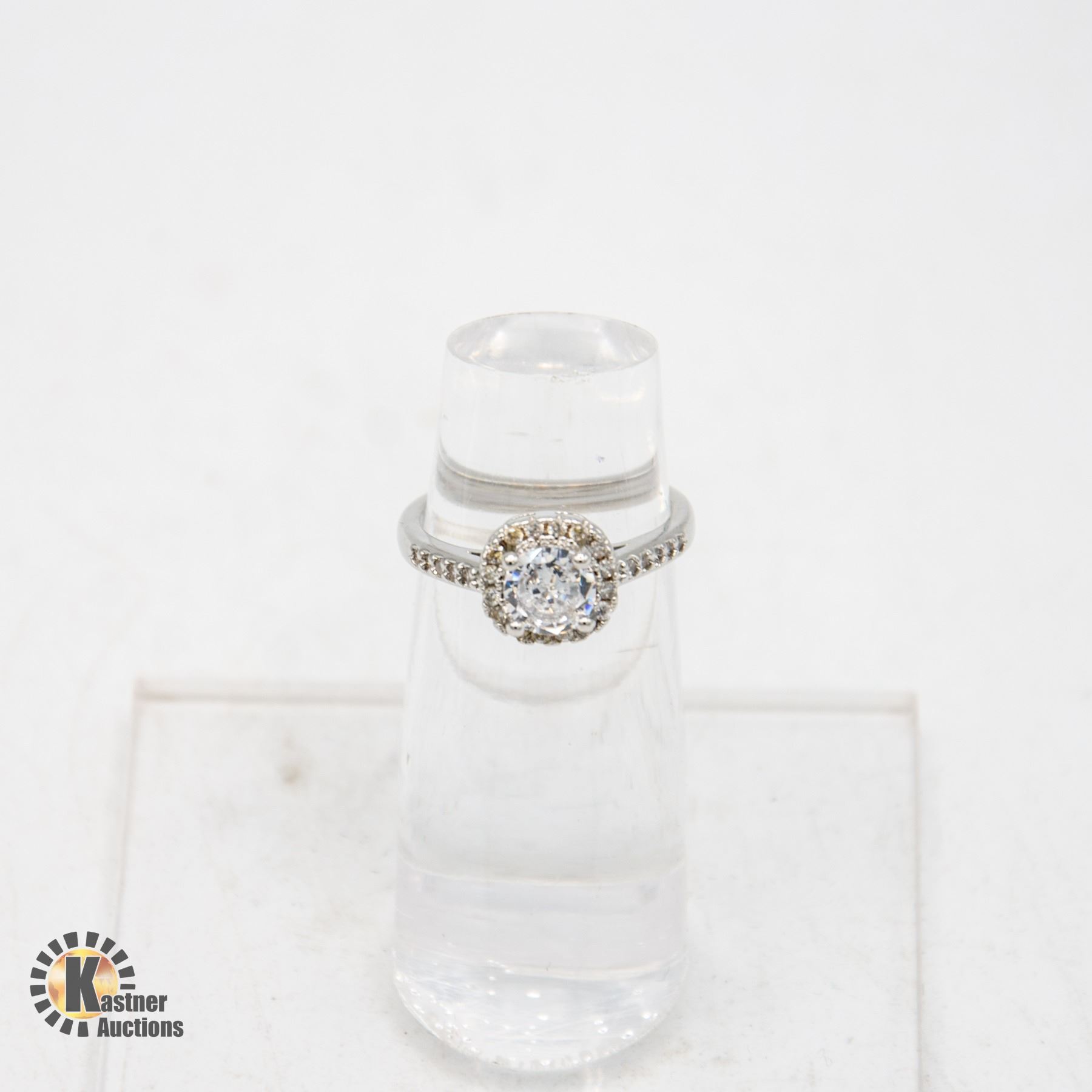 OF CLEAR STONES WITH CLEAR ACCENTS IN THE SHANK OF THE RING SIZE 6.25