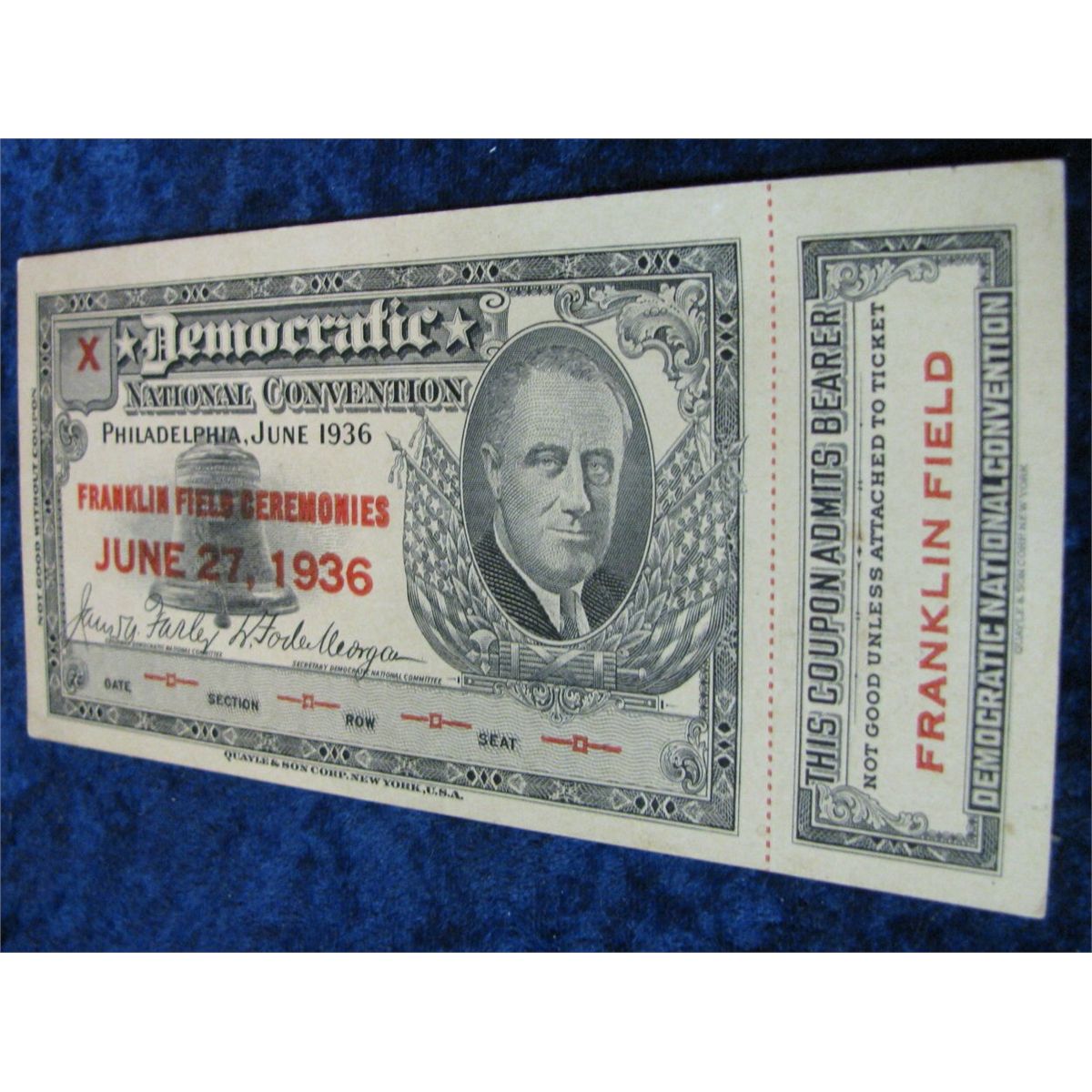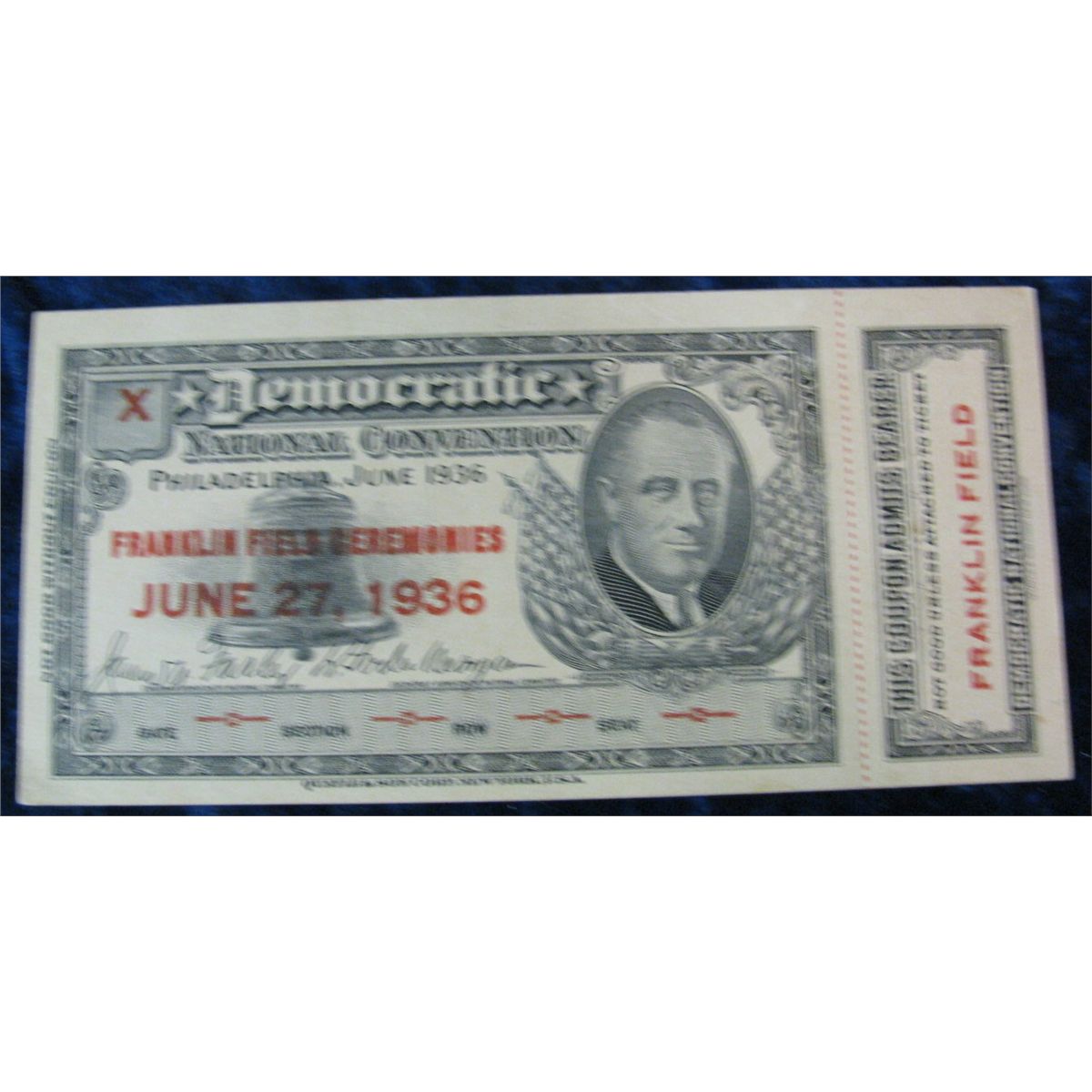 384. June 27, 1936 Democratic National Convention Philadelphia ticket.