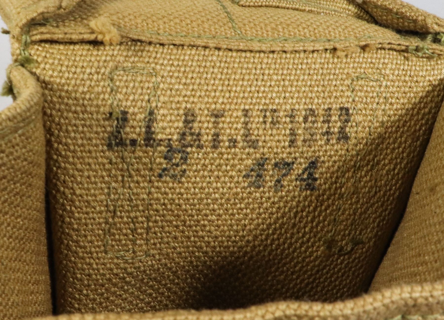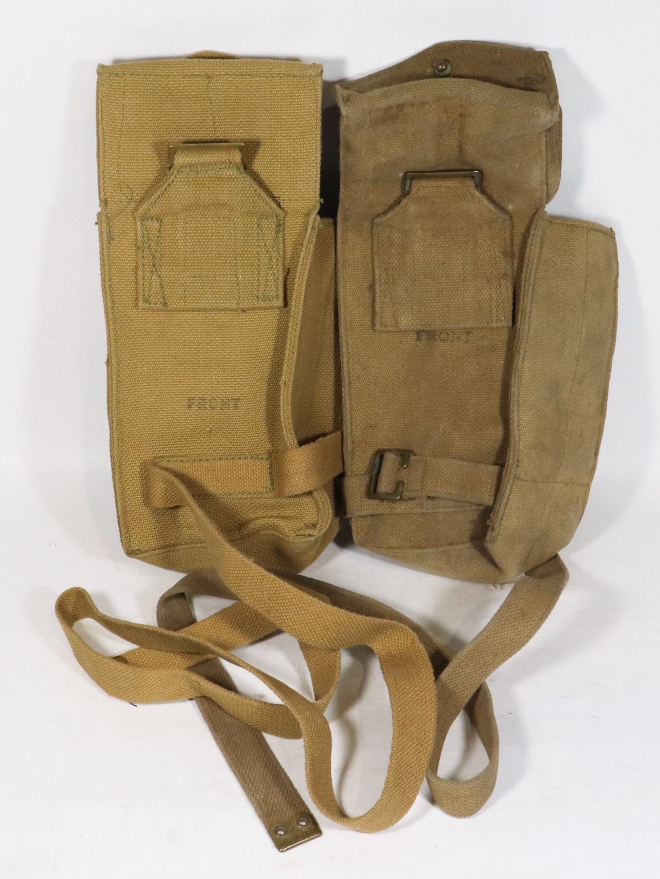 1940 AND 1942 DATED INCLUDING CANADIAN BROAD ARROW MARKING VISIBLE ON ONE POUCH WITH STRAPS WORLD WAR TWO CANADIAN ALLIED FORCES UNIFORM BATTLEDRESS EQUIPTMENT