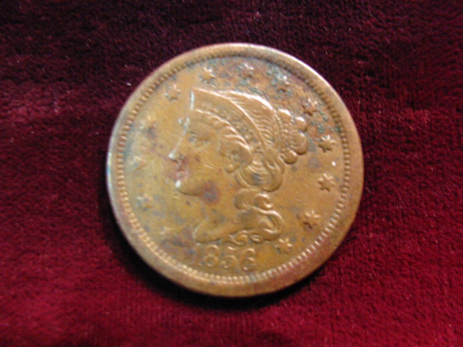 3849. 1856 US Large Cent. VF Toned Spots & Corrosion.