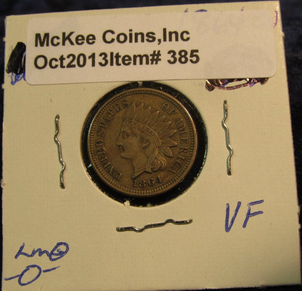 385. 1864 Copper-nickel Indian Head Cent. VF 20. Redbook value $55.00.