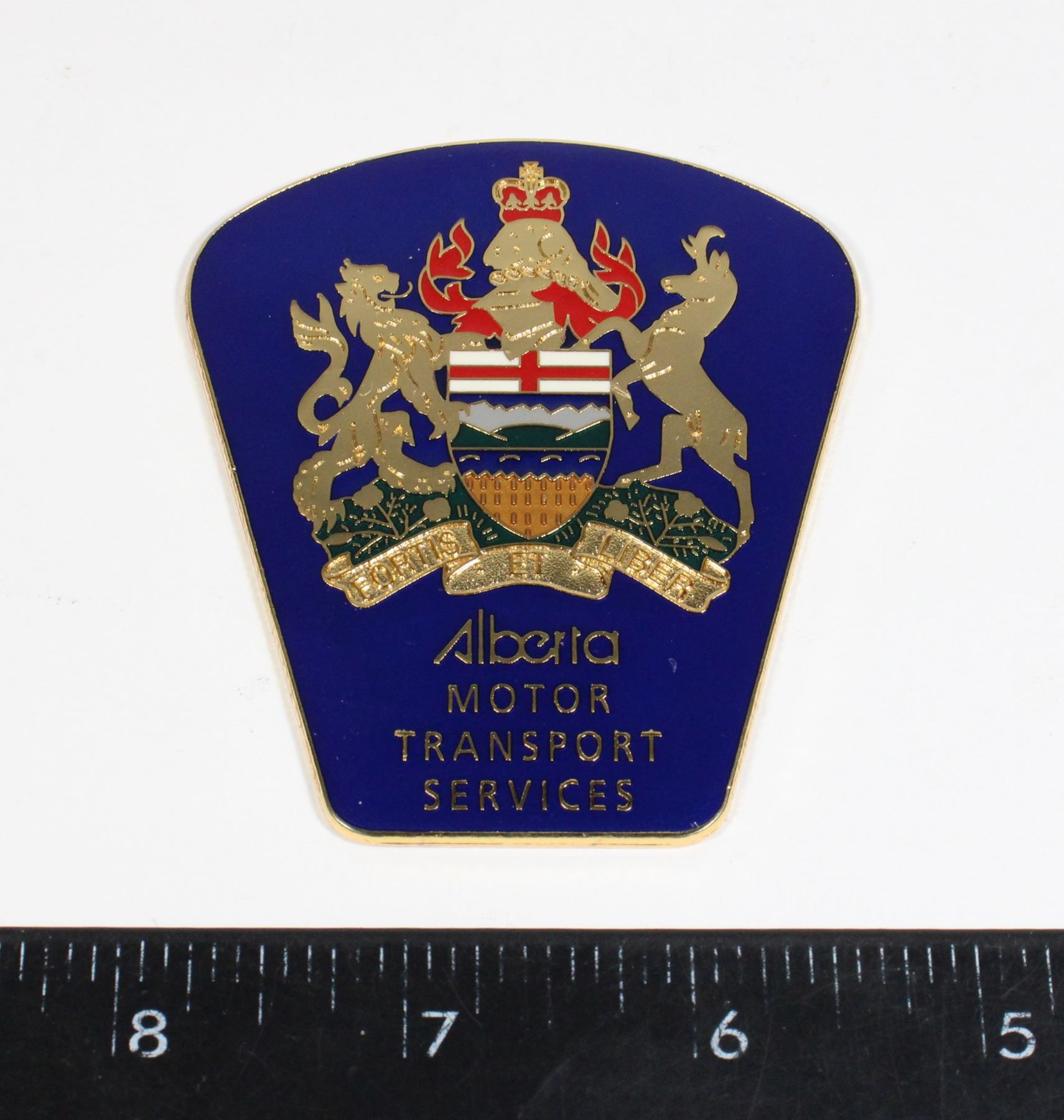 LARGE ENAMEL INSIGNIA, REVERSE MARKED "JUNIPER LACOMBE ALTA.CAN."