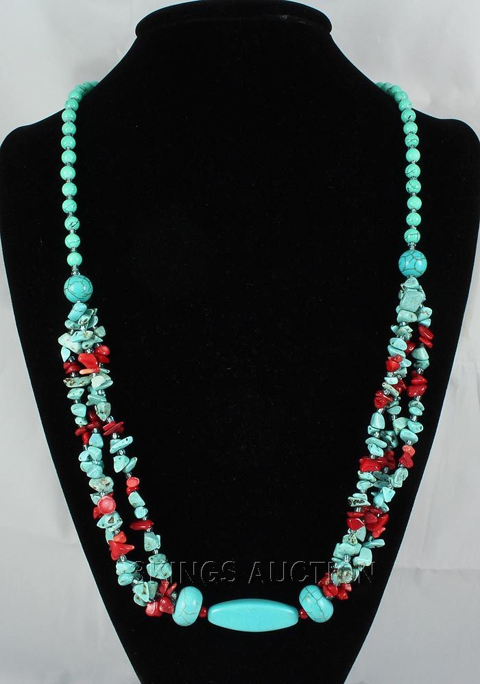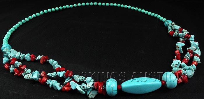 386.29CTW TURQUOISE & RED CORALS STATEMENT NECKLACE **|**|** 28 INCHES CHUNKY TURQUOISE & RED CORALS STATEMENT NECKLACE ; MSRP: $300